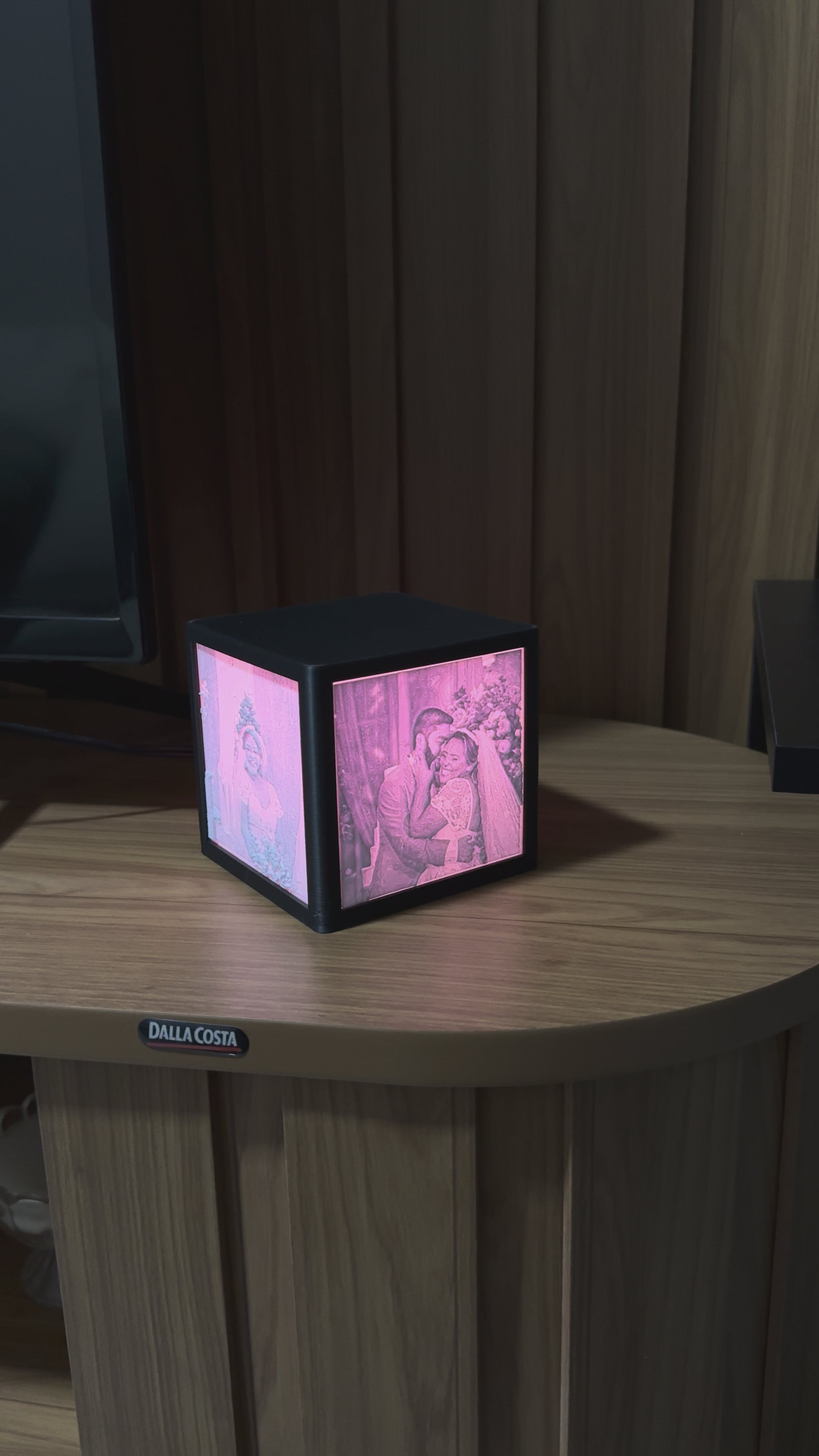 Transforme seus momentos mais especiais em uma peça de decoração elegante com esta luminária personalizada. Com espaço para quatro fotos suas, ela cria uma atmosfera acolhedora e única, perfeita para valorizar suas memórias com sofisticação e estilo. Ideal para iluminar e personalizar qualquer ambiente com um toque exclusivo.